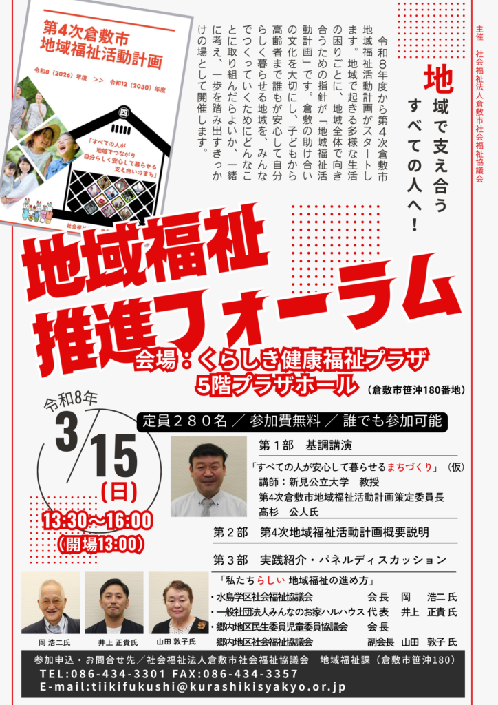 令和8年度から第4次倉敷市地域福祉活動計画がスタートします。