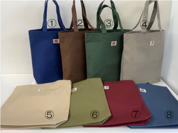 今年度新しく募金付商品の「倉敷帆布うさピーエコバッグ(1,800円税込)」ができあがりました。 エコバッグには内ポケットがあり、今までの「倉敷帆布うさピーバッグ」よりサイズが大きくなりました。エコバッグを購入いただくことで、売り上げの一部が赤い羽根共同募金に募金され、倉敷の地域福祉活動に役立てられます。また、倉敷のお土産としても大変喜ばれるバッグです。 カラーは、①花紺、②こげ茶、③濃グリーン、④グレー、⑤アイボリー、⑥薄カーキ、⑦ワイン、 ⑧スカイブルーの8色になります。 サイズは高さ約34cm、幅約40cm、マチ約11cm、持ち手の長さ約23cmです。数に限りがありますので、在庫につきましては、各事務所へお問い合わせください。 ★お問い合わせ(代表) 倉敷市共同募金委員会(倉敷市社会福祉協議会 地域福祉課) TEL 434-3301