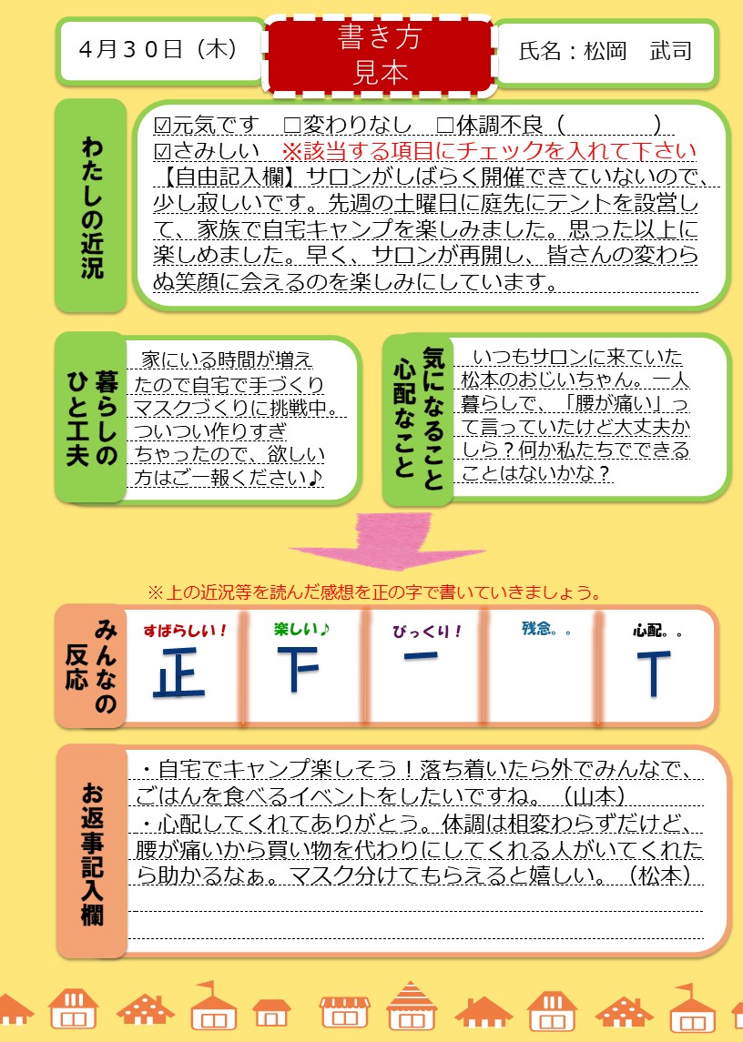 コロナ禍でも、お互いの暮らしがつながりが途切れることがないように、「つながる回覧」は一人ひとりの生活の様子や気になることを交換日記のようにしたためて、サロンメンバーやご近所さんのお宅を巡ります。