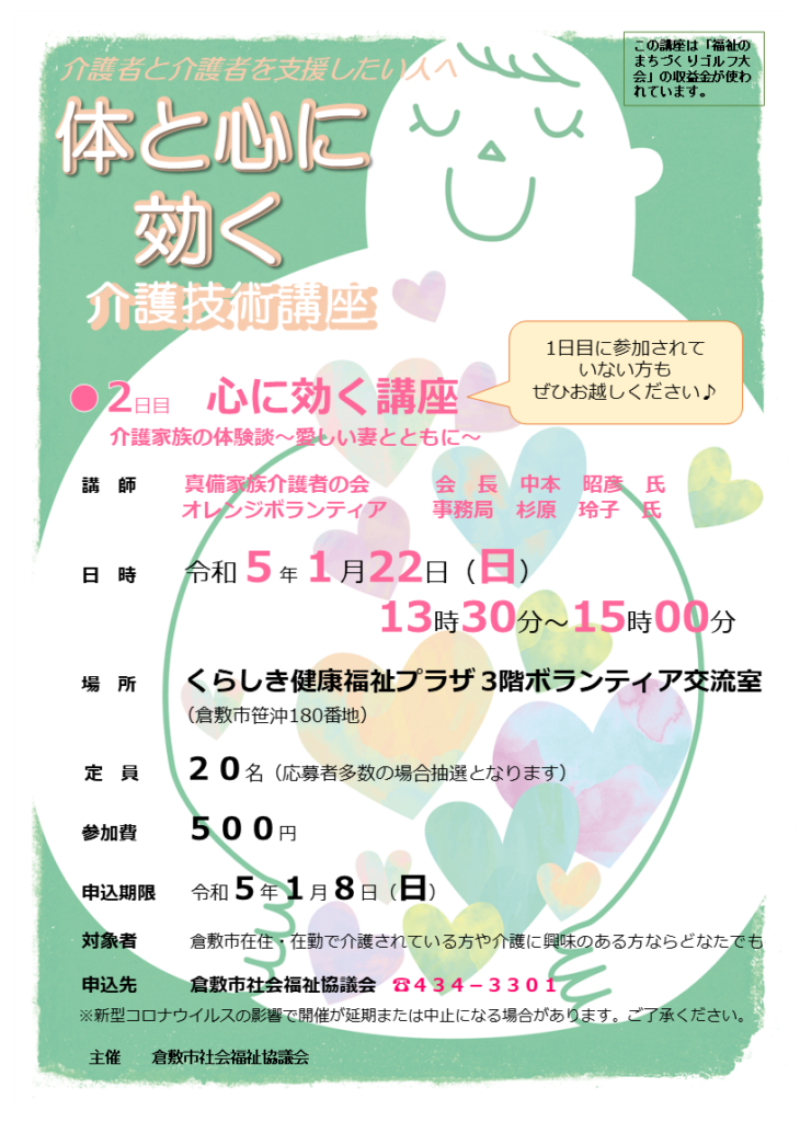☆申し込み方法:倉敷市社会福祉協議会 地域福祉課までご連絡ください ☎086-434-3301