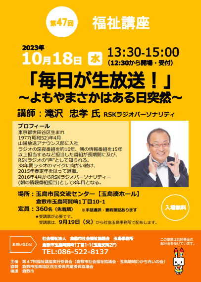 第47回福祉講座『毎日が生放送!~よもやまさかはある日突然~』を開催します!