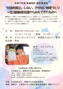 令和7年度 真備地区福祉講演会「『社会的孤立』しない、させない地域づくり ~生活困者支援からみえてきたもの~」参加者募集
