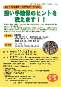 自分たちの活動をいつまでも続けるために 担い手確保のヒントを教えます!!