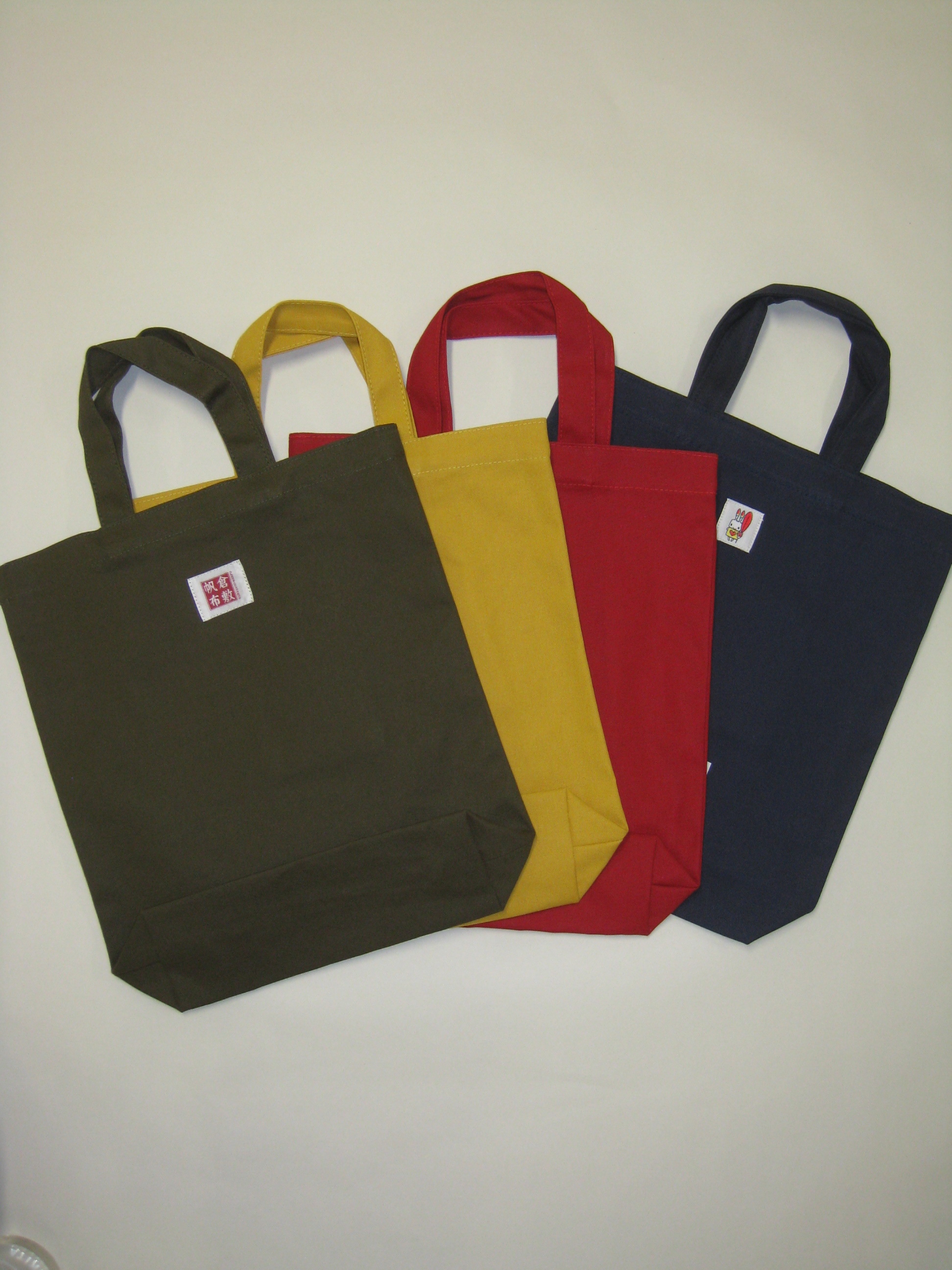 横型トートバック オリーブ色(2016年新色)、赤色、紺色(高さ23㎝ 横38㎝ マチ約8㎝)