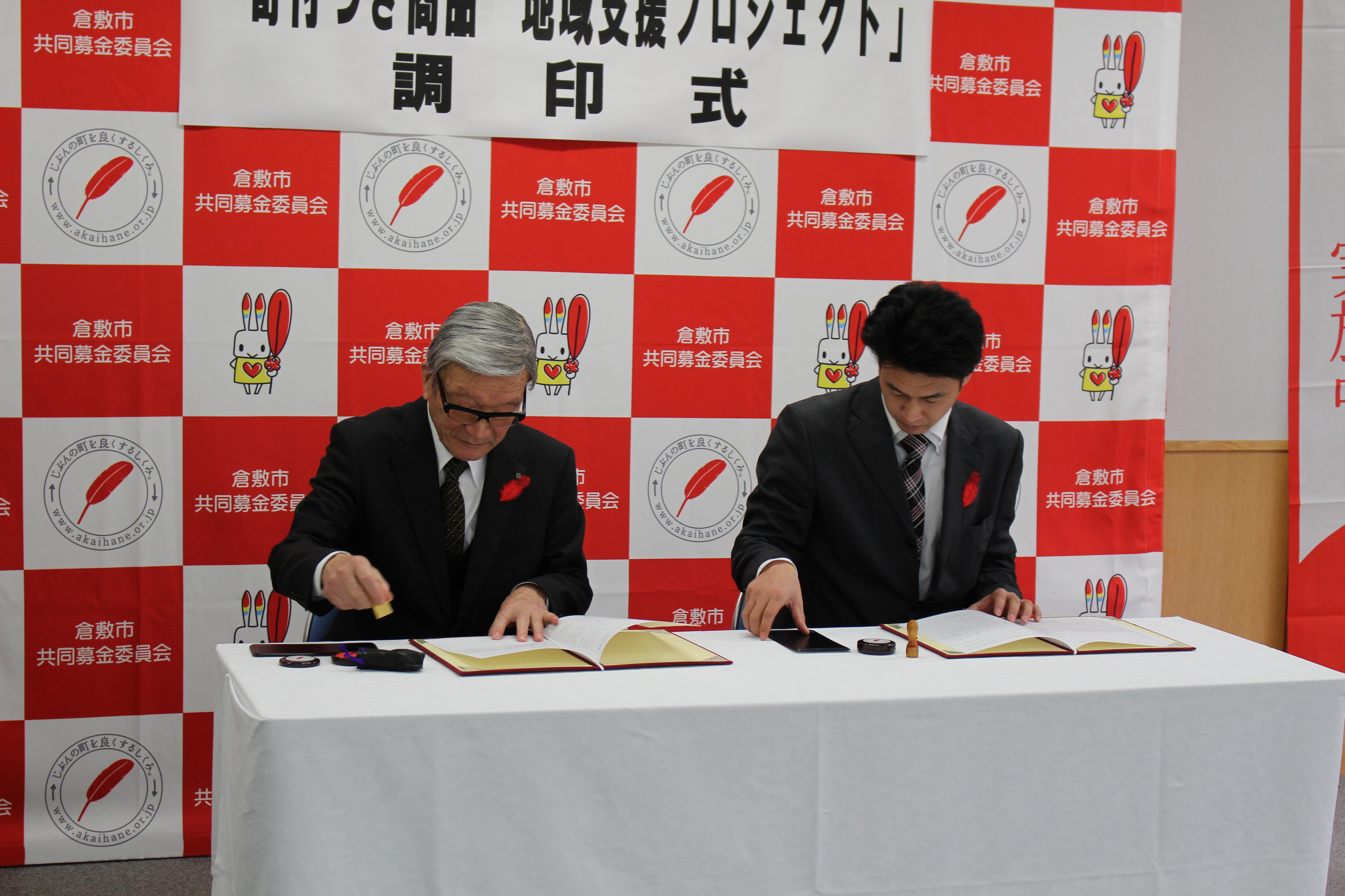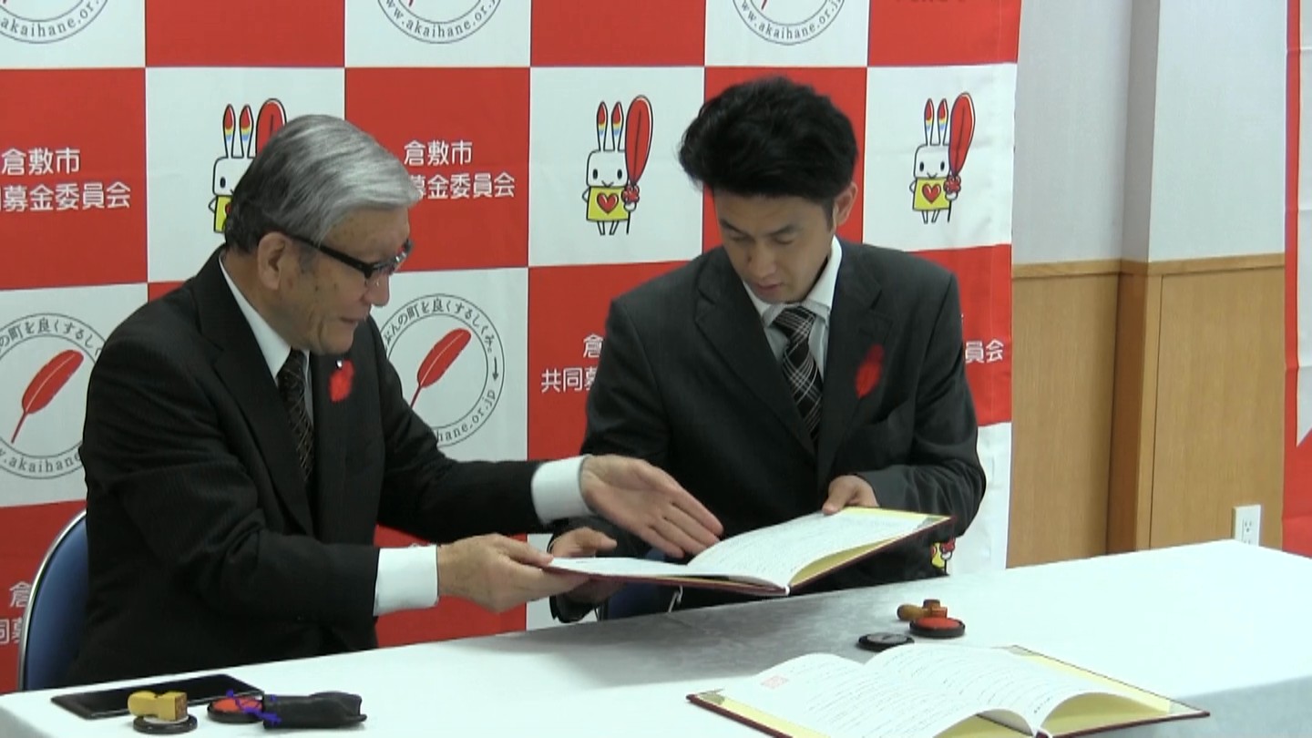 本年度から、赤い羽根共同募金「寄付つき商品 地域支援プロジェクト」をスタートしておりますが、このたび、岡山県内で12番目となるシャングループ有限会社シャン様と協議が整い、1月31日(火)に、シャングループ有限会社シャン専務 藤原隆志様にご出席をいただき、調印式を行いました。