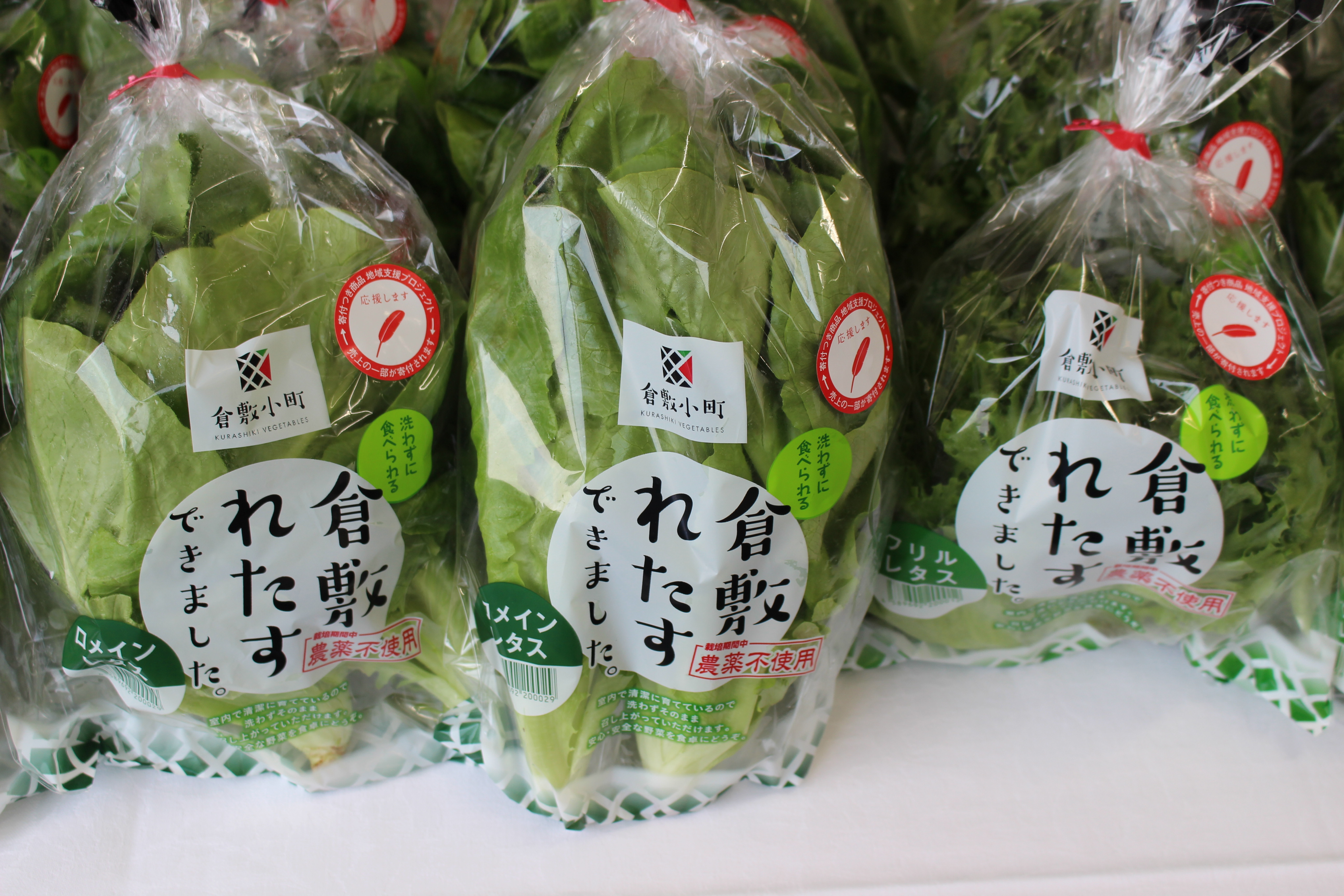 水耕栽培の「倉敷小町 倉敷れたす」を作り、市内の小売店に商品を納品 した売り上げの一部(1パックにつき0.5円)を倉敷市共同募金委員会に寄附するというものです。ぜひ、お店でレタスをお買い求めください!